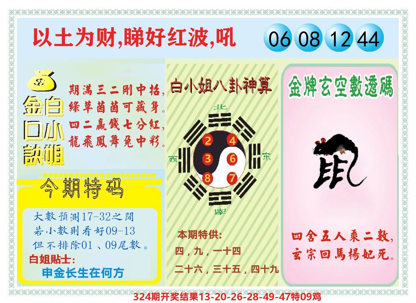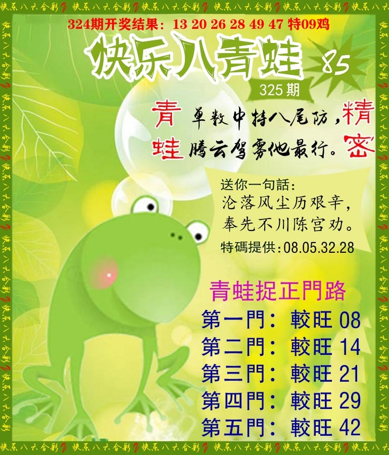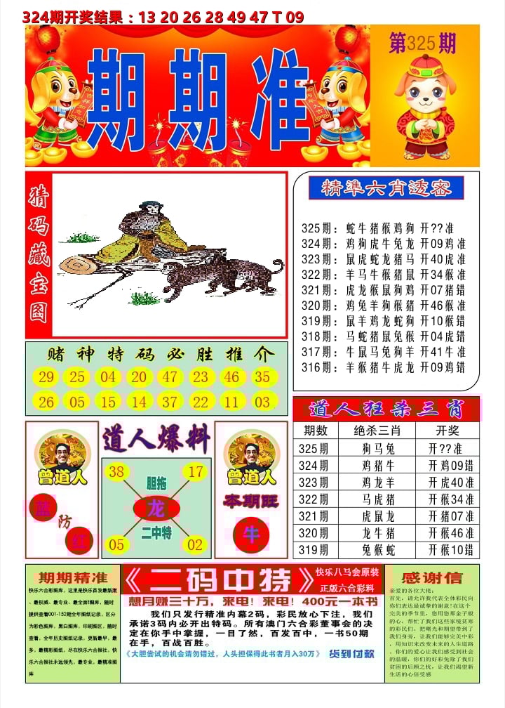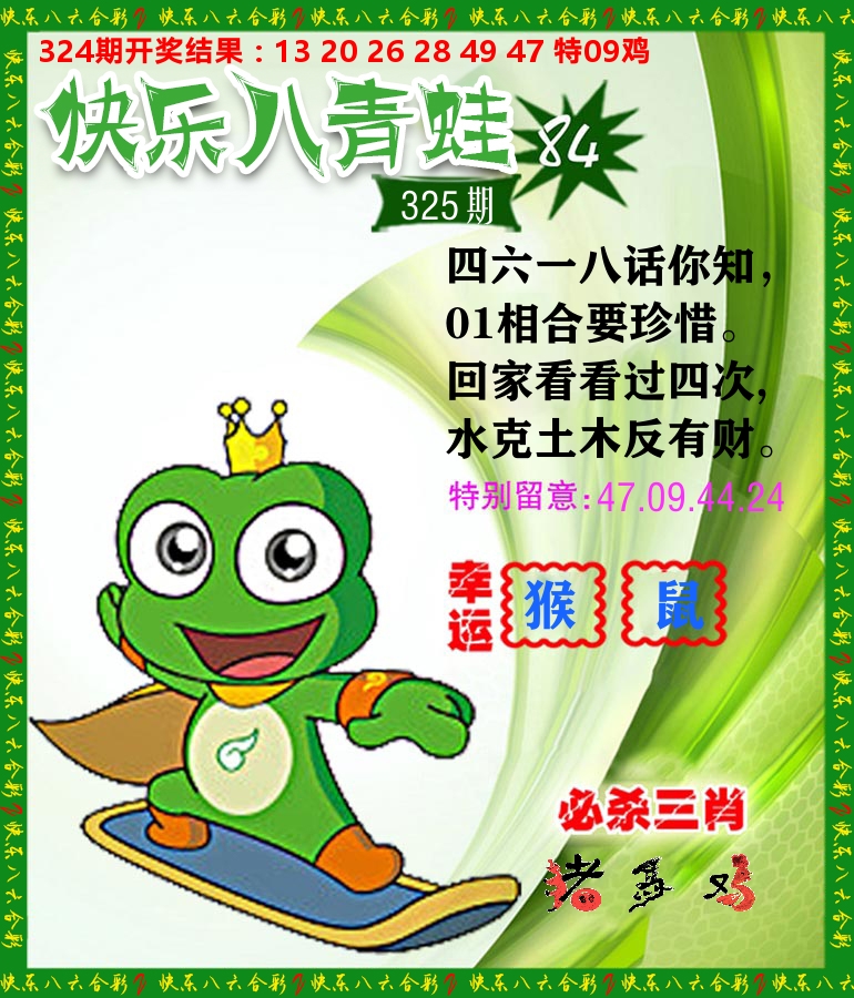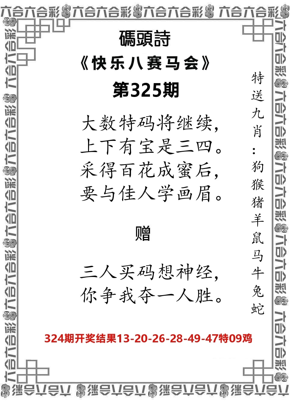 解:猪前狗后结亲家,得猪狗,看看地支是哪家,是地肖蛇羊鸡狗鼠虎,开狗32