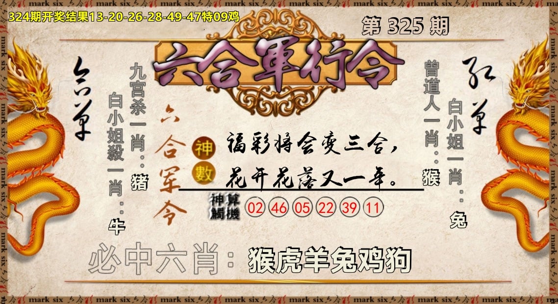 解:金风解五行金的生肖:猴鸡,名扬天下,可解天肖:牛兔龙马猴猪,开龙02