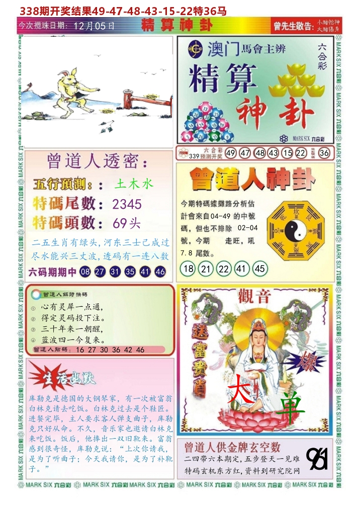 解:金风解五行金的生肖:猴鸡,名扬天下,可解天肖:牛兔龙马猴猪,开兔03